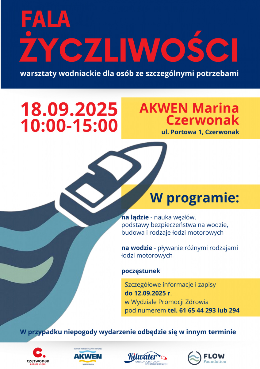 🌊,,Fala życzliwości- warsztaty wodniackie dla osób ze szczególnymi potrzebami"🌊, które organizowane są 18 września na terenie AKWEN Marina.