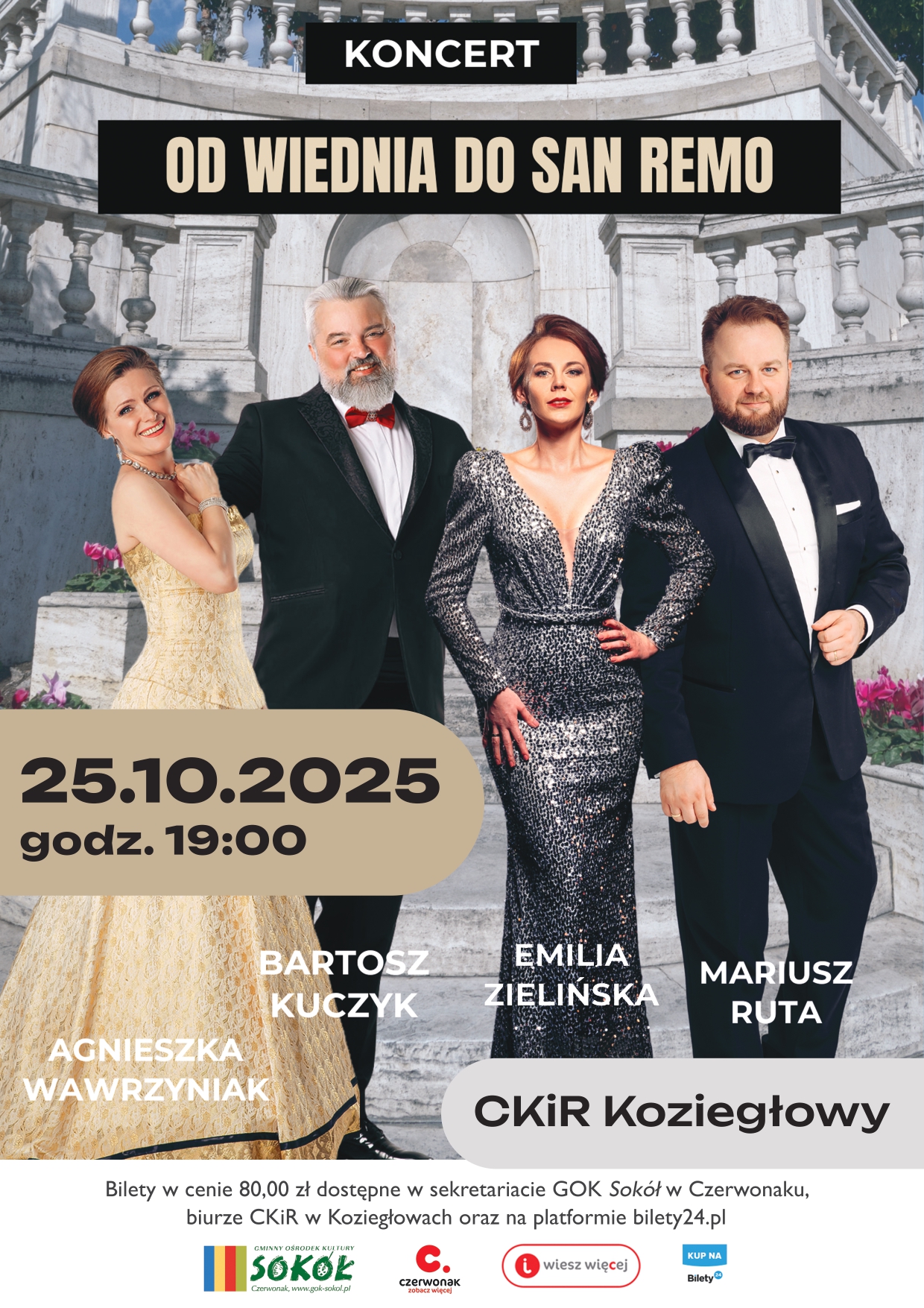 Bilety w cenie 80,00 zł będą dostępne od 25 sierpnia w biurach GOK Sokół w Czerwonaku i
